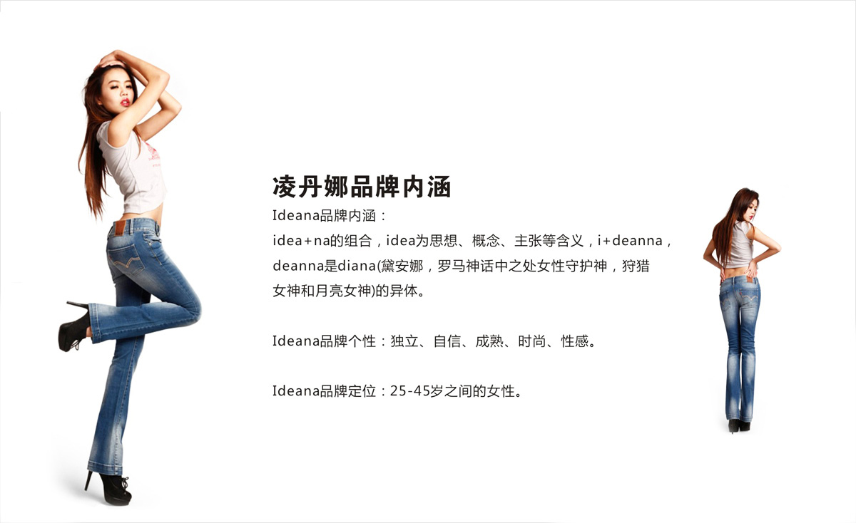 項目背景:一百多年來(lái)牛仔褲以其快活而充滿(mǎn)激情的獨特風(fēng)格,以其充滿(mǎn)青春的滲透性,始終體現一種經(jīng)典和優(yōu)美。而女人的衣櫥里永遠少一條牛仔褲,不同品牌的牛仔褲有著(zhù)不同的風(fēng)格,性感的、時(shí)髦的、個(gè)性的、夸張的、隨意的、簡(jiǎn)約的。