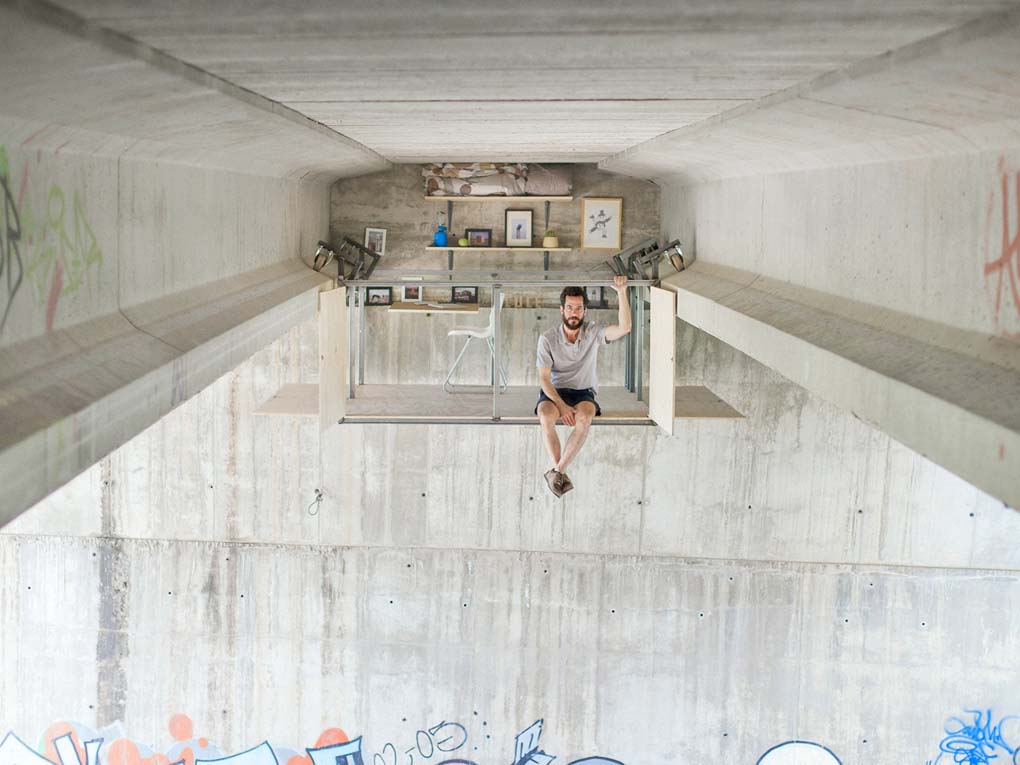 不要覺(jué)得是異想天開(kāi)。西班牙設計師Fernando Abellanas就把他的工作室藏在了巴倫西亞的某個(gè)天橋下面。
