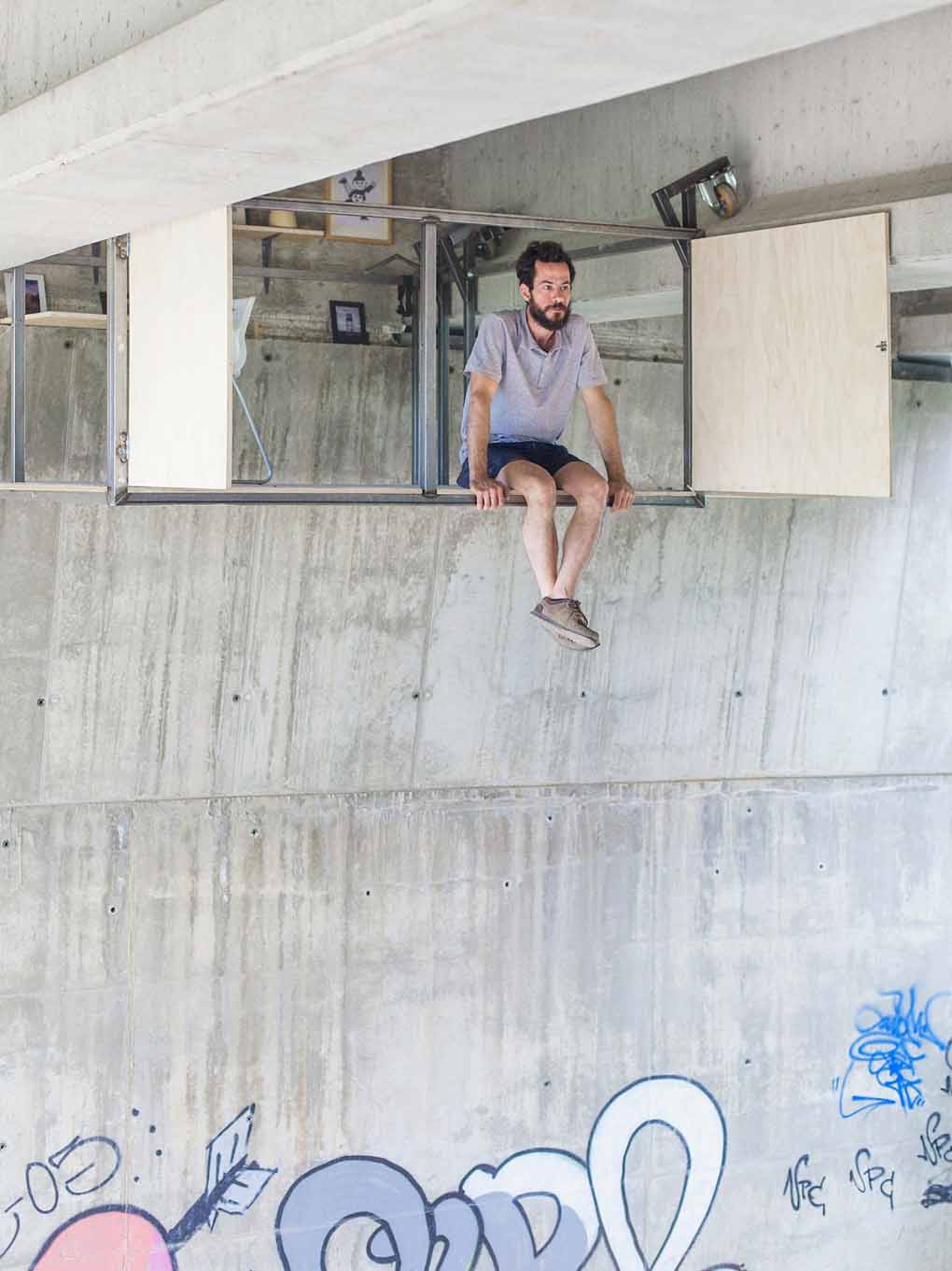 小時(shí)候我們常常和小伙伴約定某個(gè)地方為秘密基地,在開(kāi)放的空間里仿佛擁有了自己的小秘密。這個(gè)天橋下的工作室可以說(shuō)是大人的秘密基地,可以在里面觀(guān)察這個(gè)世界,又躲開(kāi)城市的喧囂。